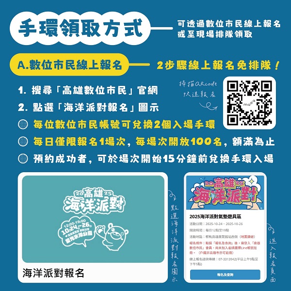搜尋「#高雄數位市民」官網,點選「海洋派對報名」圖示